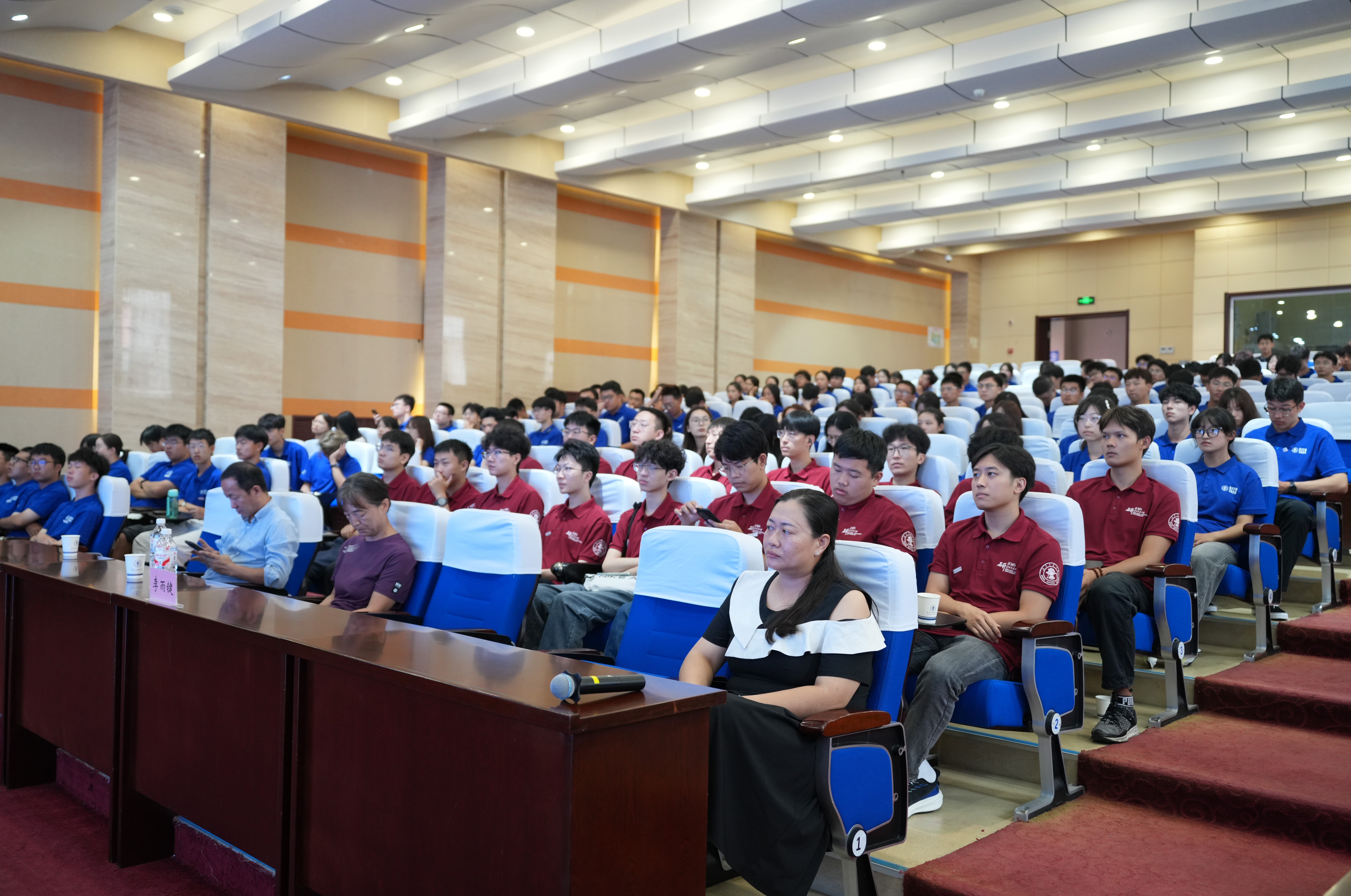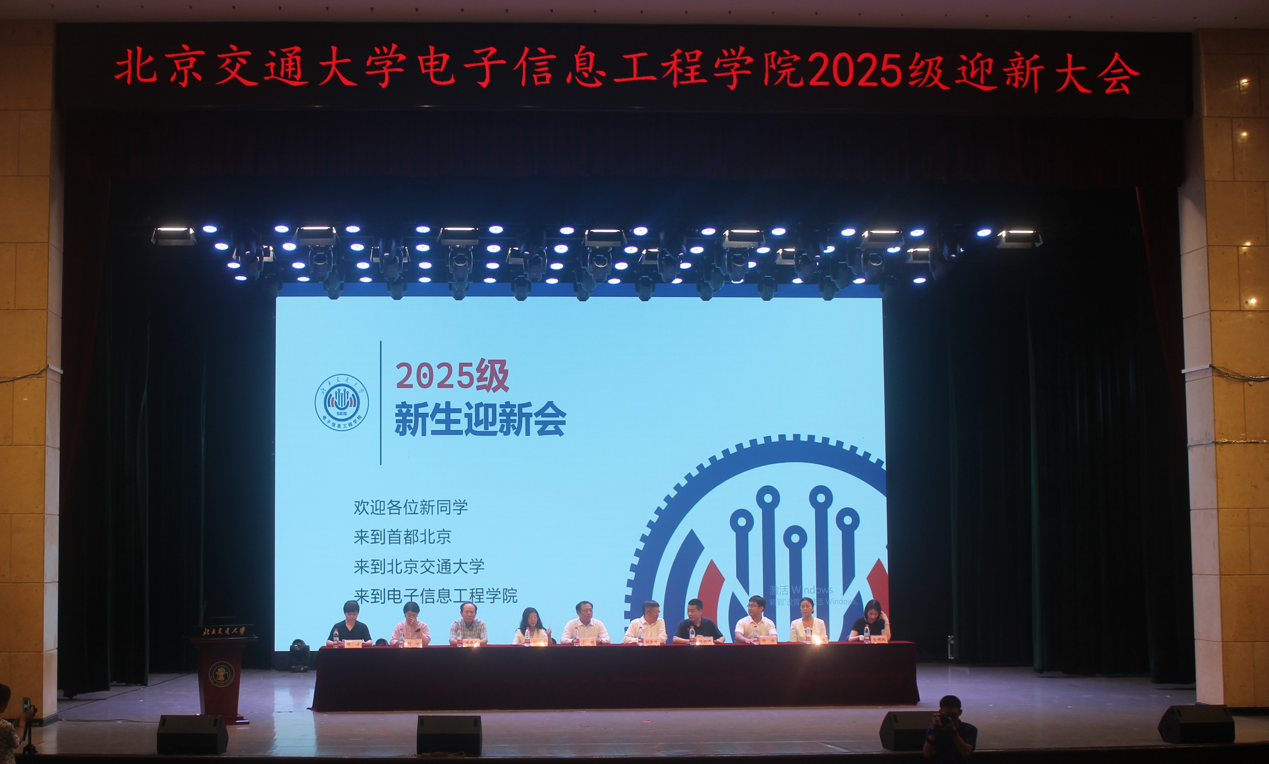 主会场内,校党委常委、副校长、电信学院院长艾渤,院党委书记刘东平,党委副书记韩柏涛,副院长周华春,院长助理刘欢,校友代表中国联通智能城市研究院副总工刘琪,青年教师代表陈佳,各系主要负责人及25级新生线下参会,会议由党委副书记韩柏涛主持;威海校区二学位新生、唐山校区新生通过直播实时参与,副书记副院长刘留前往唐山校区分会场,副院长李雨键在威海校区分会场,分别统筹协调各校区迎新会组织与新生服务工作。