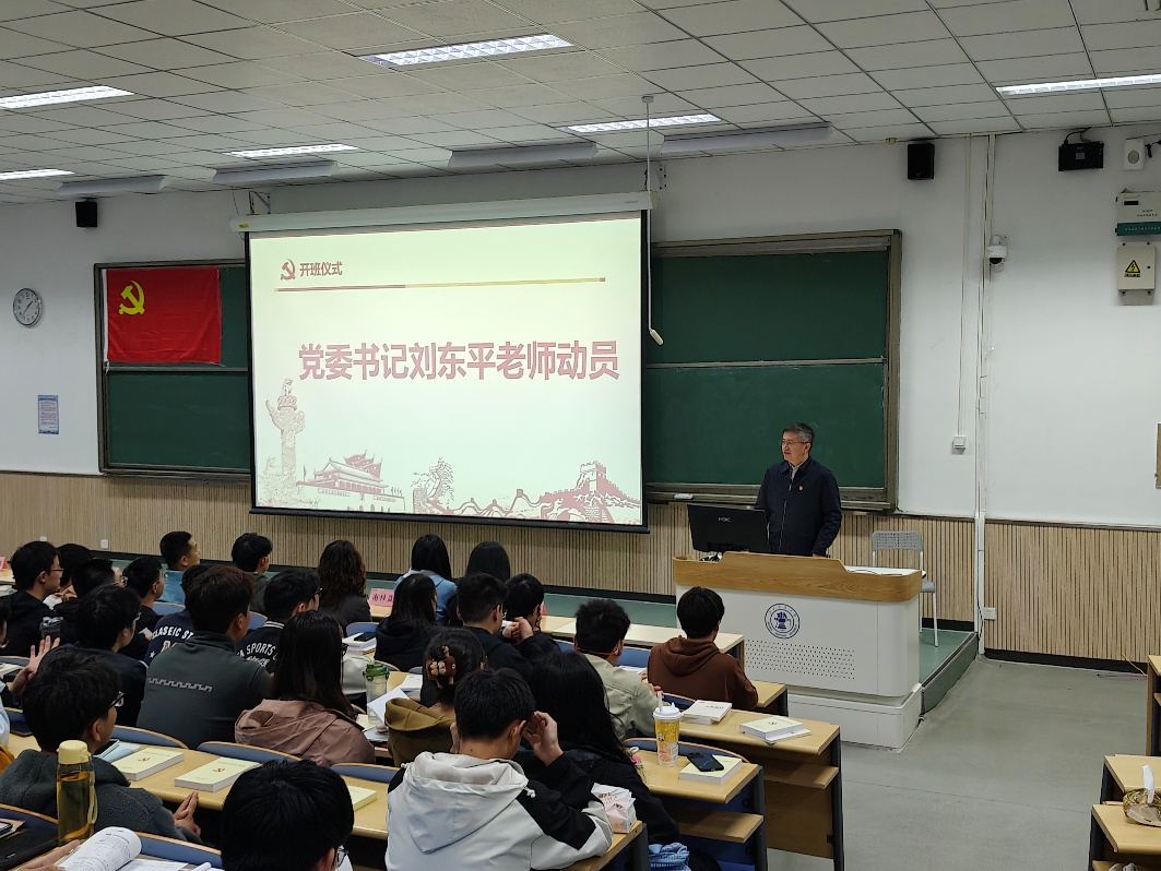 随后,学院党委书记刘东平做开班动员并提出三点期望:一是珍惜培训班学习机会,以严谨态度对待课程,提升理论水平;二是将理论知识融入学生工作与科研生活,以理论指导实践;三是增强党性修养,铭记入党初心使命,在思想和行动上向党靠拢,争取早日成为合格党员。